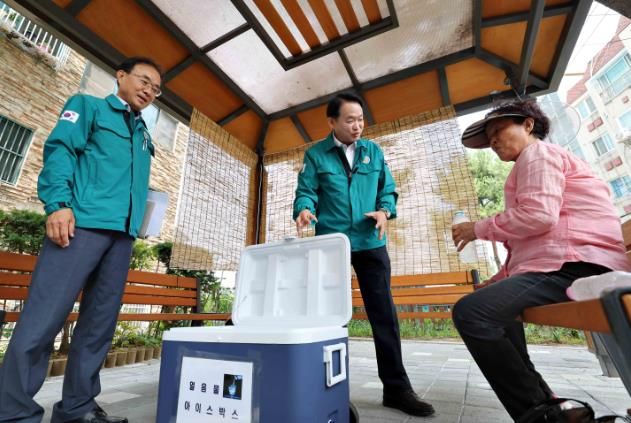 올해부터는 야외 무더위쉼터 개선사업으로 총 8개소 쉼터에 음료수 냉장고 및 아이스박스를 설치하여 이용자에게 시원한 생수도 제공한다.