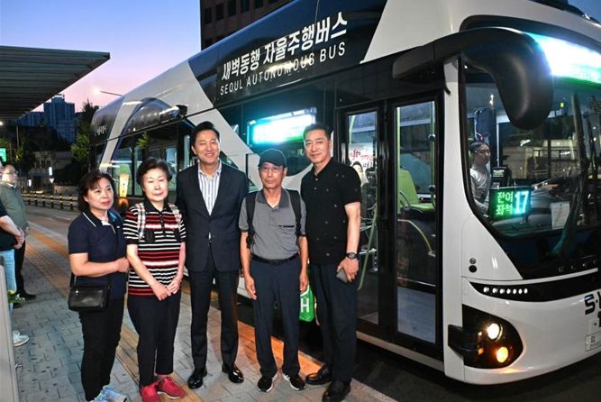 오는 1일 민선 8기 만 2주년을 앞둔 오 시장은 이날 종로4가 광장시장 중앙정류소부터 충정로역까지 자율주행버스에 탑승했다. 오 시장은 미화원·경비원 등 새벽 근로자 4명과 함께 타 그들의 애환과 의견을 듣고, 앞으로도 ‘서울의 새벽을 여는 시민들의 삶을 밝히는 첨단교통혁신’을 통한 동행으로 이른 새벽과 밤늦은 출퇴근길 어려움을 조금이라도 덜어드리고 대중교통 사각지대도 해소해 나겠다고 말했다.