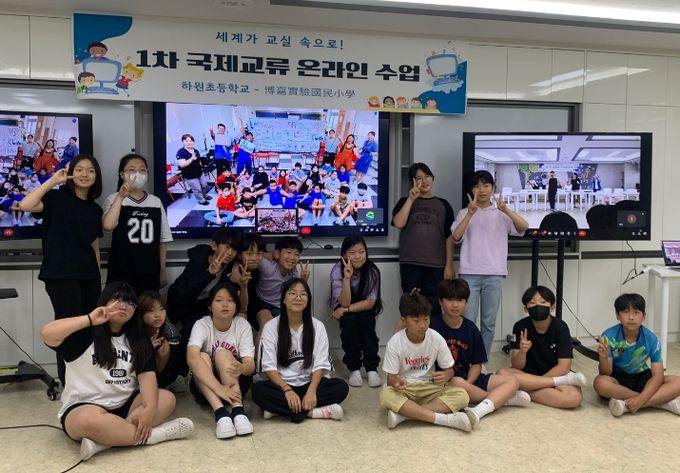 (아름다운교육신문) 제주도교육청 하원초등학교에서는 27일 6학년 학생들이 대만 박가실험초 학생들과 온라인 수업을 실시했다.