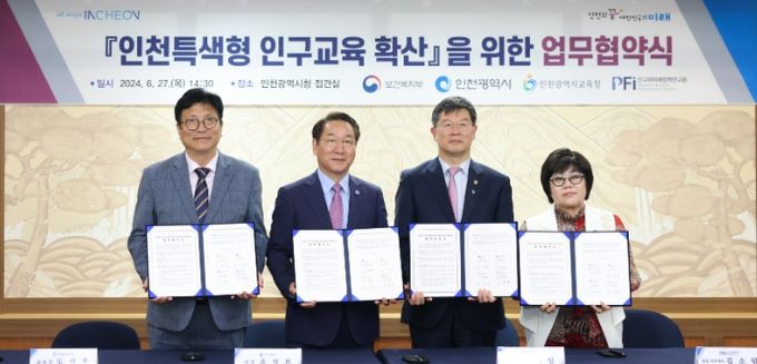 (아름다운교육신문) 인천광역시교육청은 27일 인천시청에서 보건복지부, 인천광역시, 사단법인 인구와미래정책연구원과 ‘인천광역시 인구위기 대응 역량 강화 및 인천 특색형 인구교육 확산’을 위한 업무협약을 체결했다.