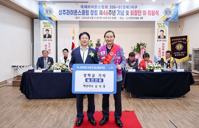 이병환 (재)성주군별고을장학회 이사장은 “투철한 봉사정신과 지역을 위해 헌신하는 모습은 존경받아 마땅하며, 어려운 여건속에서 우리군 인재육성을 위해 장학금을 기탁해 주셔서 감사드린다”고 전했다.