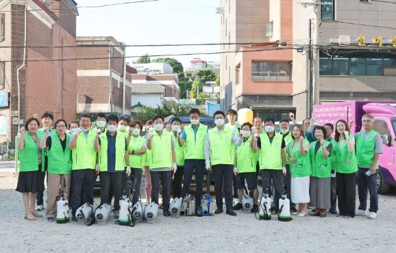김정헌 구청장은 이날 직접 휴대용 연무 방역기를 메고, 보건소 방역기동반, 주민자율방역단과 함께 공원, 주택가 골목, 하수구 등 동네 취약지역을 중심으로 구석구석 연무 방역을 진행했다.