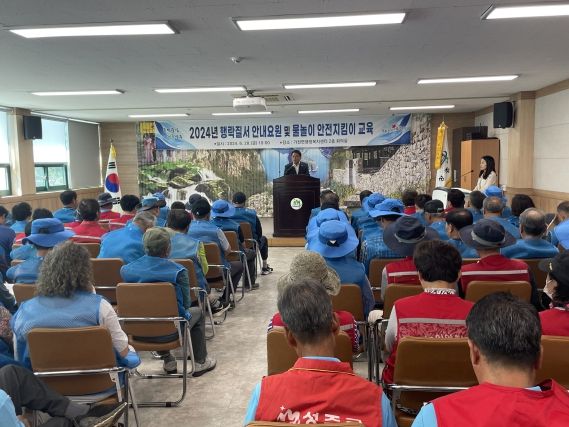 (아름다운교육신문) 성주군은 본격적인 행락철을 맞이하여, 행락질서계도 및 건전한 여가 문화 정착을 위하여 6월 28일 10시, 가천면 행정복지센터 2층 회의실에서 이병환 군수, 구교강 군의원이 참석한 가운데 70여 명의 행락질서 안내요원 및 물놀이 안전지킴이를 대상으로 행락 근무요령 및 안전 교육을 실시했다.