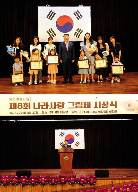 이번 시상식은 지난 6월 4일 장자호수공원에서 관내 재원 아동과 보육 교직원 1,300여 명이 참석한 가운데 개최된 ‘제8회 나라사랑 그림제’에서 우수한 실력을 선보인 아동들을 시상하는 자리로, 시상식에서는 100명의 아동이 ‘구리시장상, 시의장상, 국회위원상’ 등을 수상하는 기쁨을 누렸다.