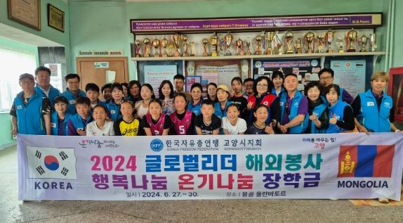 (아름다운교육신문) 한국자유총연맹 고양시지회는 6월 27일(현지시간) 몽골 울란바토르 인근에 있는 호몽 고등학교를 찾아 학생 10명에게 총 2,000달러의 장학금을 전달했다.