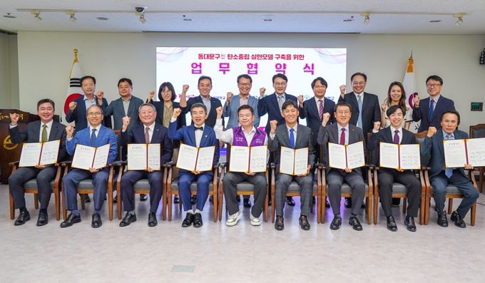 (아름다운교육신문) 서울 동대문구는 28일 한국동서발전, 한국에너지공단, 에너지엑스와 컨소시엄을 구성, 관내 4개 대학교(경희, 서울시립, 한국외국어, 삼육보건) 및 전통시장상인연합회와 함께 탄소중립 실현을 위한 ‘동대문구 건물에너지 효율화사업 업무협약(MOU)’을 체결했다고 밝혔다.