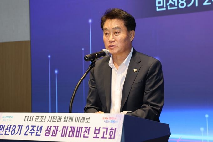 (아름다운교육신문) 군포시는 민선8기 2주년을 맞아 지난 28일 시민 300여명이 참석한 가운데 시청 대회의실에서 시정운영 성과 및 미래비전 보고회를 개최했다.