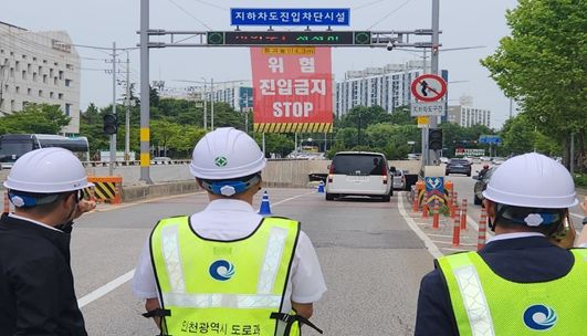 아울러 지하차도의 통제기준은 관련 지침에 따라 침수심 15cm 도달시 진입을 통제하는 것으로 돼 있으나, 인천시는 통제기준과 함께 호우특보 시 지역별 강우량과 침수상황을 종합적으로 판단해 해당 시설물을 관리하는 관리청에서 통제를 결정하도록 기준을 강화해 운영하고 있다.