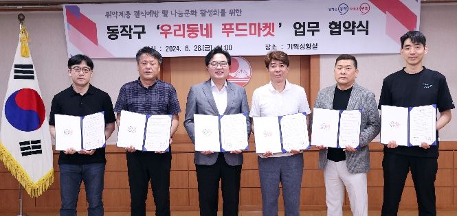 구는 지난 28일 동작구청에서 관내 마트 5개소와 ‘우리동네 푸드마켓’의 원활한 추진을 위한 업무협약(MOU)을 체결했다며 이같이 밝혔다.