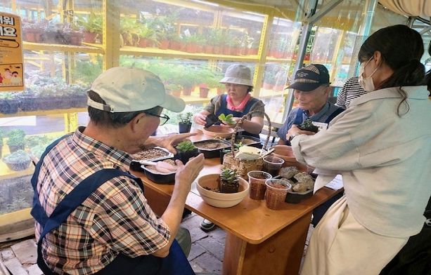 치매환자와 가족들은 ‘다육이 화분 제작’, ‘감자 수확 및 요리 오감 체험’ 등 다양한 자연 친화적 체험을 함께하며 잠시 일상에서 벗어나 편안한 시간을 보냈다.
