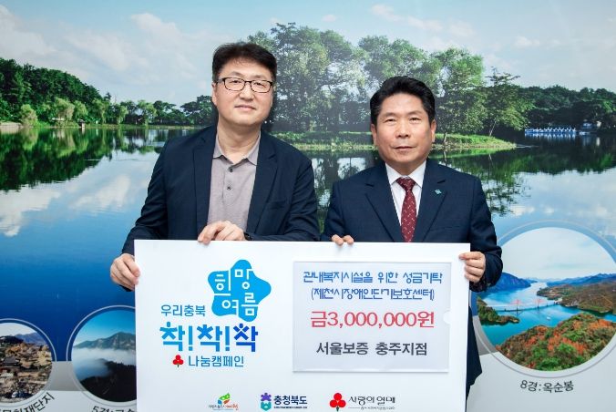 (아름다운교육신문) 서울보증 충주지점은 6월 28일 제천시 복지시설에 300만원을 기탁했다.