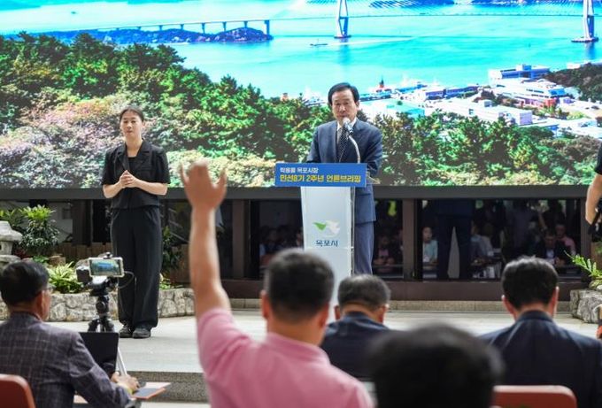 박홍률 목포시장은 1일 오전 시청 중앙현관에서 민선 8기 취임 2주년을 맞아 그동안 성과와 앞으로의 시정방향을 설명했다.
