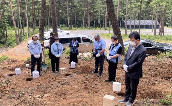 군은 국립기억의숲의 ‘무연고사망자 수목장림 지원사업’과 연계해 진행했으며, 전국에서 1만5250명의 대원이 활동하는 봉사단체인 ‘사랑실은 교통봉사대(대장 손삼호)’가 함께 참여했다.