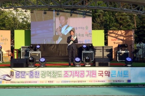 (아름다운교육신문) 신영재 홍천군수는 6월 28일 도시산림공원 토리숲 특설무대에서 열린 용문 홍천광역철도 조기착공 염원 국악콘서트에 참석했다.