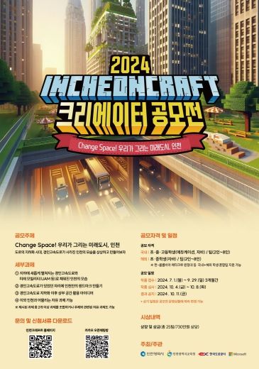 인천시교육청 관계자는 “이번 공모전은 학생들이 삶의 공간인 인천의 발전 방향을 가상공간에서 설계하는 새로운 학습경험을 제공할 것”이라며 “학생들이 마인크래프트를 통해 다양한 관점에서 인천의 숨은 가치를 발견하고 함께 창작해 나가길 바란다”고 말했다.