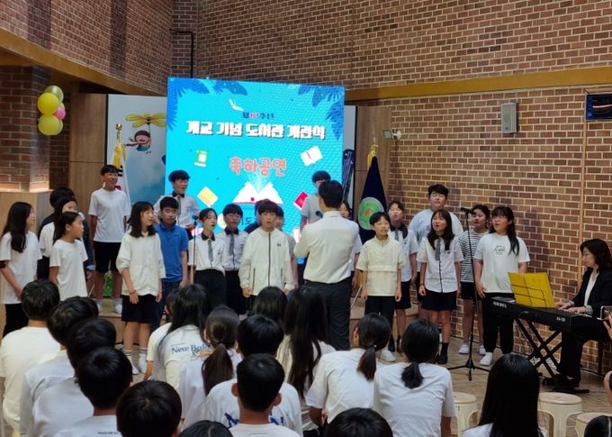 (아름다운교육신문) 제주도교육청 이도초등학교는 6월 28일, 학생과 학부모 및 내빈 180여 명이 참석한 가운데 제12주년 개교 기념 ‘영글이네 책뜰’ 도서관 개관식을 가졌다.
