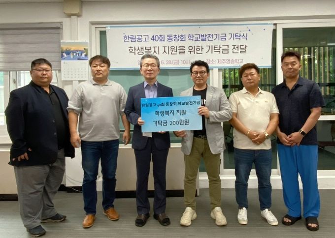 이번 전달식은 한림공업고등학교 40회 동창회에서 제주영송학교의 학생복지 지원을 위해 200만 원의 학교발전기금을 전달했다.