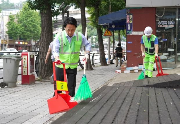 민선 8기 후반기 첫행보로 새벽 거리 청소 나선 이성헌 서대문구청장