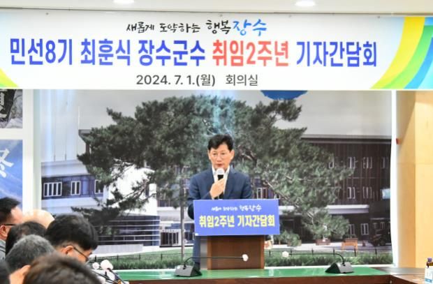 (아름다운교육신문) 민선8기 2주년을 맞아 최훈식 장수군수는 1일 군청 회의실에서 기자간담회를 개최해 주요 성과를 설명하고, 후반기 역점 전략을 제시했다.