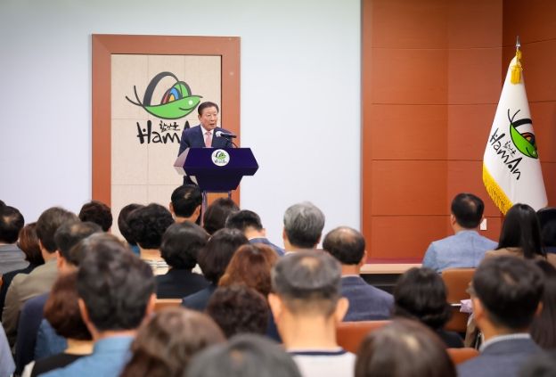 민선8기 취임 2주년을 맞아 정례조회를 주재한 조근제 군수는 “지난 2년간 ‘군민과 함께 만드는 행복도시 함안’을 만들기 위해 모든 분야에서 괄목한 성과를 얻을 수 있었던 것은 직원여러분들이 함께 노력해 준 덕분”이라며 “경남의 중심인 함안을 역사와 미래가 함께하는 고품격 함안으로 만들기 위해 남은 임기 2년도 최선을 다하겠다”고 말했다.