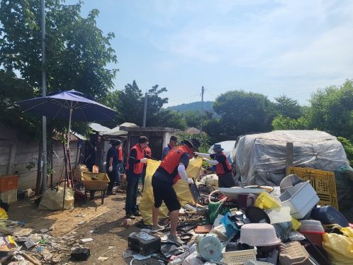 특히 직접 가져온 종량제 봉투와 마대자루를 이용하여 주택 안과 밖에 쌓여있던 생활 쓰레기와 1톤가량의 대형폐기물을 분류하여 배출했다.