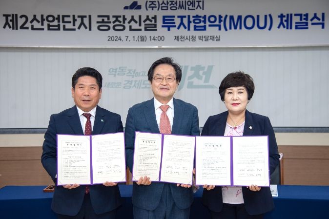 (아름다운교육신문) 제천시는 7월 1일 제천시청에서 소재·부품·장비 전문기업인 주식회사 삼정씨엔지와 제천 제2산업단지 공장 신설 투자협약(MOU)을 체결했다.