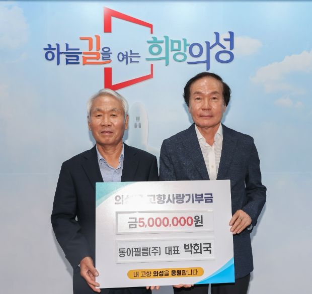 (아름다운교육신문) 의성군은 지난 6월 28일 박회국 동아필름 주식회사 농업회사법인 대표이사가 고향사랑기부금 개인최고액인 500만원을 의성군에 기탁했다고 밝혔다.