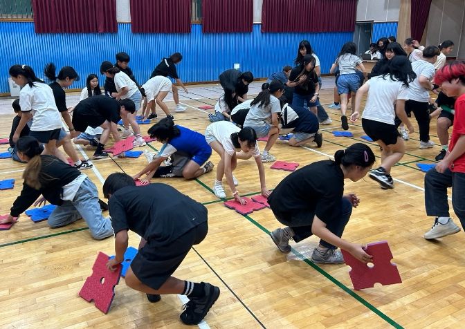 이번 인성 교실은 학생들의 신체 활동을 촉진하고, 서로 협력하고 배려하는 자세를 배울 수 있도록 뉴스포츠 활동으로 구성됐다. 학생들은 팀을 이루어 플로어볼, 협동 컵 쌓기, 판 뒤집기 등 다양한 활동을 하며 즐거운 시간을 보냈다.