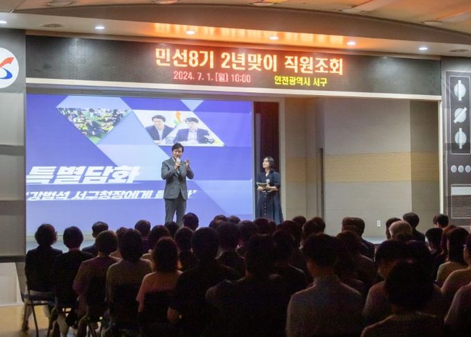 (아름다운교육신문) 인천 서구는 지난 1일 민선8기 취임 2년을 맞아 직원 조회를 개최하고 내부 결속력을 다지는 시간을 가졌다고 밝혔다.