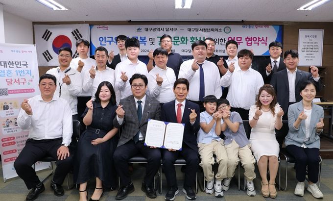(아름다운교육신문) 대구 달서구가 27일 대구달서청년회의소 대강당에서 대구달서청년회의소와 인구위기 극복을 위해 공동 대응하고자, 청년을 응원하고 결혼친화 문화 확산 등을 위한 업무 협약을 체결했다.