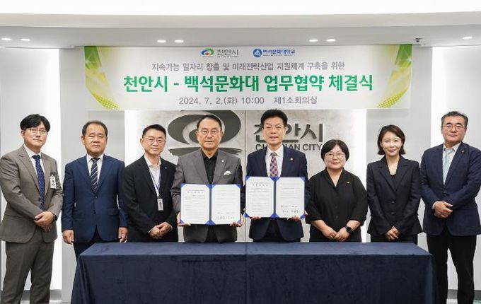 (아름다운교육신문) 천안시는 2일 백석문화대학교와 ‘지속가능 일자리 창출 및 미래전략산업 지원체계 구축’을 위한 업무협약을 체결했다.