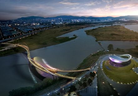 랜드마크 관광보행교는 길이는 428m, 폭은 5m이며, 2개의 특화 공간인 아크 베이와 아크 테라스로 구성돼 있다.