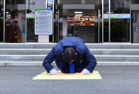 (아름다운교육신문) 김한종 장성군수가 민선8기 후반기 첫날인 1일 오전 청사 앞에서 군민을 향해 큰절을 올렸다. ‘군민을 섬기는 군정’을 상징하는 김 군수의 큰절은 2022년 취임 이후 민선8기 출범일과 시무식 날마다 어김없이 이어지고 있다.