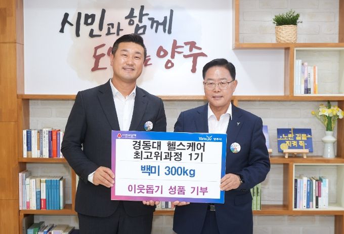 (아름다운교육신문) 양주시는 2일 ㈜경동대 헬스케어 최고위과정 1기에서 양주시 어려운 이웃을 위해 써달라며 백미 300kg(120만원 상당)를 기부했다고 밝혔다.
