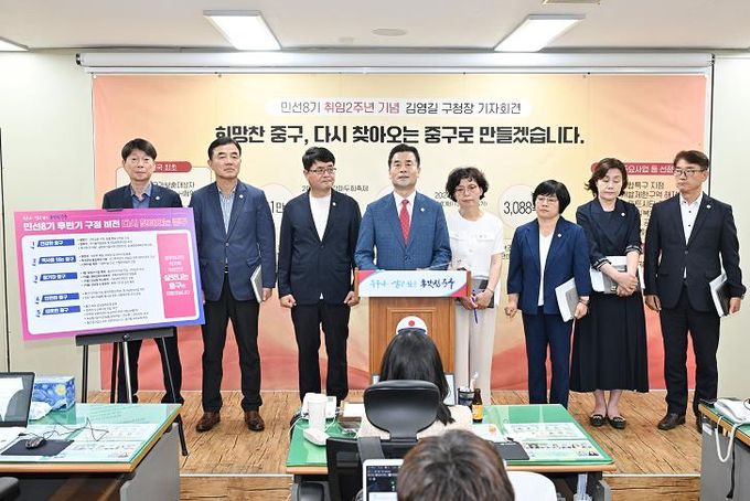 김영길 중구청장은 “비즈니스 구청장으로서 국시비 확보에 더욱 매진하고 주민 삶의 질 향상 및 지역 정주여건 개선을 위한 다양한 사업을 보다 속도감 있게 추진해 나가며 희망찬 중구, 다시 찾아오는 중구를 실현하겠다”고 밝혔다.