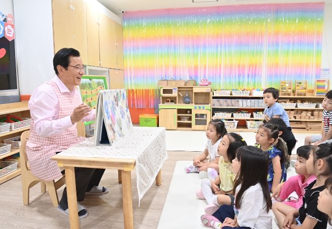 이 시장은 위례 국공립어린이집 일일 보육교사 활동으로 임기 후반기 첫 공식 일정을 시작했다. ‘아이 키우기 좋은 도시’를 조성해 저출생 시대를 극복하겠다는 복안에 따른 것이다.