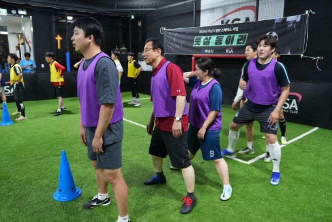 이 시장은 청년을 위한 문화·여가 활동을 지원하고 있는 청년 스페이스 5곳 중 1곳인 KSA유소년스포츠아카데미에서 4대 4 풋볼 미니게임에 출전했다.