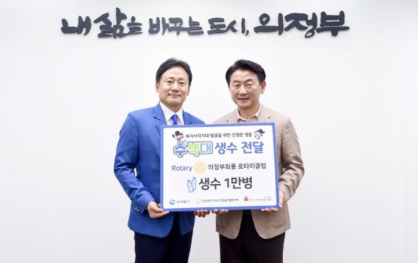 (아름다운교육신문) 의정부시는 7월 2일 의정부회룡 로타리클럽이 복지 사각지대 발굴을 위한 수(水)색대 사업에 쓰일 생수 1만 병을 전달했다고 밝혔다.