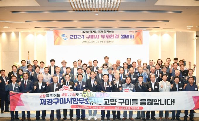 (아름다운교육신문) 구미시는 2일 서울 공군호텔에서 재경출향인과 출향기업인들을 대상으로 구미시 투자환경과 기업지원 시책 홍보를 통한 투자유치 기반조성을 위해 재경출향기업인과 함께하는'2024 구미시 투자환경 설명회'를 개최했다.