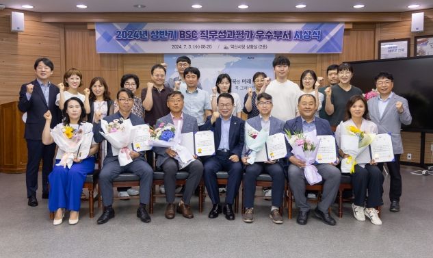 (아름다운교육신문) 익산시가 3일 상반기 BSC 직무성과평가 결과 6개 우수부서에 대한 시상식을 개최했다. 이날 시상식에는 정헌율 익산시장과 우수부서 직원 등 40여 명이 참석했다.