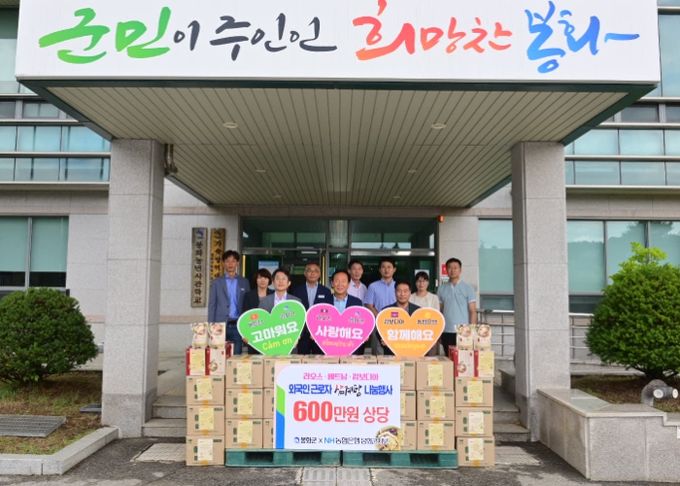 이번 전달식은 봉화군지부가 NH농협은행의 ‘외국인계절근로자 타겟-힘내세요 우리농가’ 이벤트에 응모해 삼계탕 400개가 선정되면서 이뤄졌다.