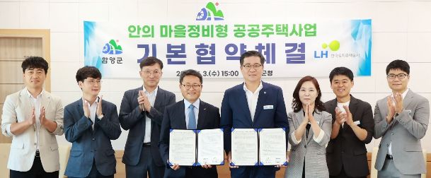 (아름다운교육신문) 함양군은 3일 오후 군수실에서 진병영 군수, 최재열 한국토지주택공사(LH) 경남지역본부장이 참석한 가운데 안의 마을정비형 공공주택사업 기본협약을 체결했다.