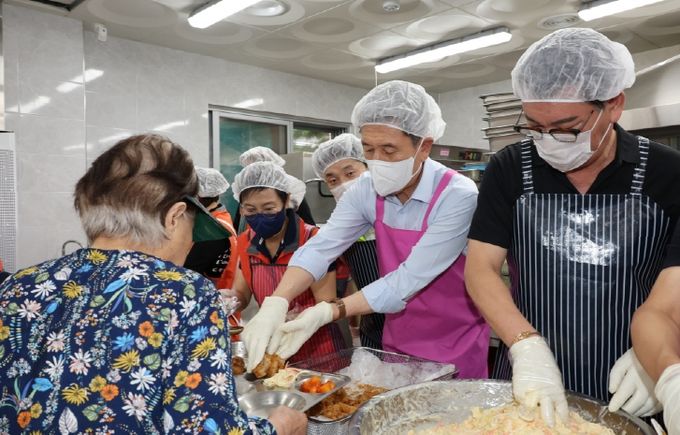이날 배식봉사에서 이 시장은 김영환 창포종합사회복지관 운영위원장, 장기현 포항시맨발걷기지회장을 비롯한 자원봉사자들과 함께 200여 명의 어르신들에게 식사를 배식하며 건강과 안부를 묻는 소통의 시간을 가졌다.