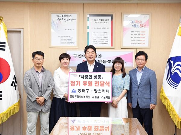 (아름다운교육신문) 부산 동래구는 지난달부터 장스카페(대표 장하숙)에서동래종합사회복지관, 기운차림 식당에 쌀 10kg 5포와 아동복지시설 새들원에 케이크와 성품을 매월 지원하기로 했다고 밝혔다.