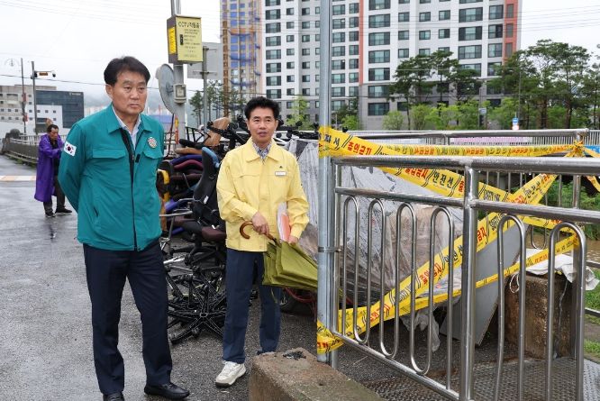 7월 2일 군포지역에 호우주의보가 발효된 상태에서 산본1동장과 지난 2022년 집중호우시 침수피해가 발생한 금정역 주변 주택가를 돌아보며 차수판 설치와 빗물받이 정비 여부를 확인하고 침수시 자동으로 차량진입을 차단할 수 있는 자동차단시설이 설치된 당동지하차도 시설물을 점검했다. 또한 호우시 범람 우려가 있는 안양천 주변 도로에 호우시 시민들이 진입할 수 없도록 통제상황에 대해서도 확인했다.