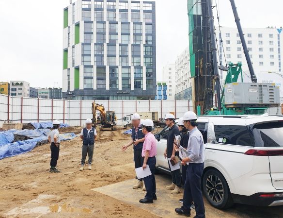 이에 공사는 현재 공사 중인 '광명소하지구 공공시설부지 복합개발사업', '광명전통시장 제2공영주차장 조성사업', '광명건강체육센터 리모델링 사업', '정신건강복지센터 및 자살예방센터 이전사업' 등 총 4개 사업장에 방문하여 수해에 대비한 지반보강 조치 및 대형장비 고정 이상유무, 수방대책의 수립여부, 누수부위 점검 등 현장점검을 실시했다.