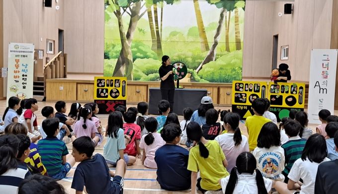 (아름다운교육신문) 제주도교육청 하도초등학교는 3일 유치원, 1~6학년 대상으로 비자림힐링숲센터에서 실시하는 ‘비만예방 인형극’을 관람했다.