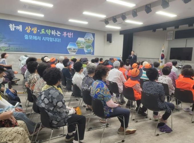 (아름다운교육신문) 부안군 줄포면은 지난 3일 면 사무소는 2층 대회의실에서 노인일자리 및 사회활동지원사업 참여 어르신을 대상으로 혹서기 대비 안전교육을 진행했다.