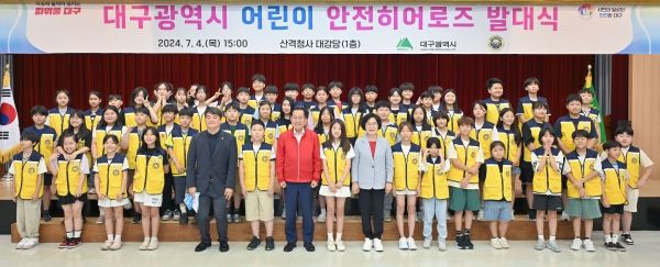 (아름다운교육신문) 대구광역시는 어린이의 눈높이에서 학교 주변 위험신고 등 어린이가 스스로 안전문화 활동에 참여하도록 유도하기 위해 ‘어린이 안전히어로즈’를 결성하고, 7월 4일 오후 3시 산격청사 1층 대강당에서 발대식을 개최했다.