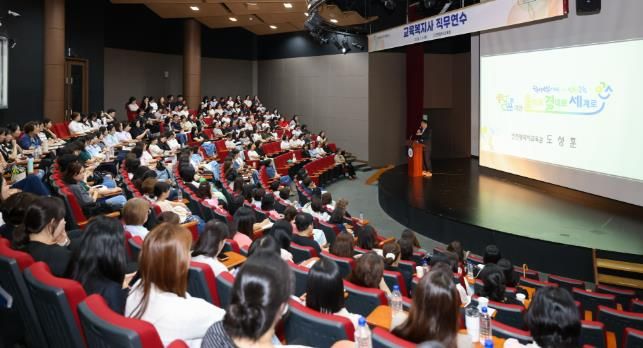 이번 연수는 변화하는 사회 환경에 맞춰 교육복지사의 직무 역량을 높이기 위해 마련했으며 ▶도성훈 교육감 정책 특강 ▶저자 초청 특강 ▶사업평가의 필요성 이해 교육 등 다양한 과정으로 운영했다.